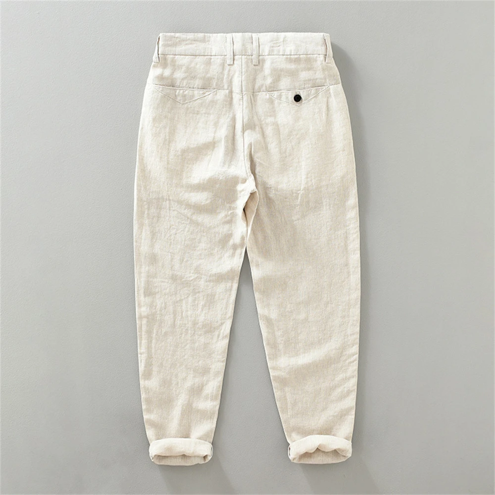 men’s Summer pants Thin Breathable Japanese Style Solid casual linen pants Ankle-Length Young man trousers